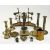 ASSORTED BRASSWARE, including pair of circular candlesticks with cylindrical push-up stems, 21cms (h); unusual pair of candlesticks with sprung holders, shaped bases, 25cms (h); pair of candlesticks with oval bases, 16cms (h); trench art shell case jug, engraved with Canadian maple leaf, 12cms (h); cast figure of Napoleon, 22cms (h), etc.Provenance: private collection Chester