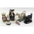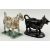 ASSORTED 19TH CENTURY STAFFORDSHIRE, including creamware cow creamer with spongeware decoration, 13cms (h); Jackfield ware cow creamer and cover, 12cms (h); figural 'Toby' pepperette, 14cms (h); Toby jug of standing man with tricorn hat, 12cms (h); one other of a seated man, 17cms (h); and Pearlware boot inkwell, 4cm (h) x 8cms (l)Provenance: private collection Wrexham