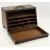 19TH CENTURY MAHOGANY PORTABLE STATIONERY CABINET, having gilded brass handle and backplate, fall front enclosing interior fitted with compartments for stationery, on turned bun feet, 26 (h) x 36 (w) x 24cms (d)Provenance: private collection Cheshire