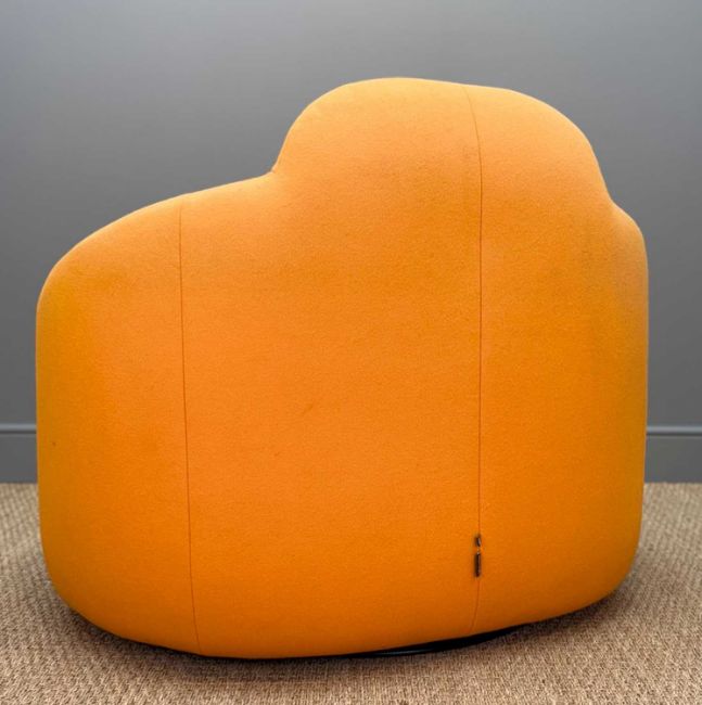 PIERRE PAULIN FOR LIGNE ROSET 'PUMPKIN' HIGH BACK SWIVELLING ARMCHAIR, orange fabric upholstery, 83 (h) x 105 (w)Provenance: consigned via CardiffComments: fabric stained and faded, inspection advised