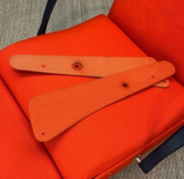 OSVALDO BORSANI FOR TECNO: MID-CENTURY P40 LOUNGE CHAIR, reclining, multi-adjustable chair, curved rubber sprung armrests, spare side panels (sun-bleached)Provenance: private collection Cardiff, family owned and seldom used from newComments: fabric appears to be original, headrest foam misshapen, some small brass work missing, fabric spotted, rubber slightly perished, foam filling disintegrating/powdery, original unrestored condition, inspection advised
