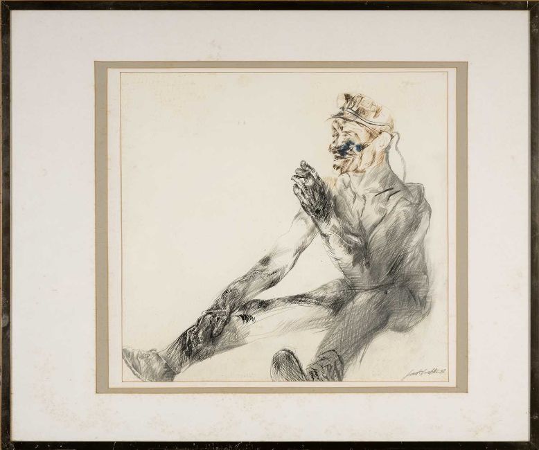 ‡ JACK CRABTREE (b. 1938) mixed media - entitled verso, 'Drawing of a Miner', signed and dated '83, 35 x 37cmsProvenance: private collection PembrokeshireComments: foxing present on the mount, framed, glazed