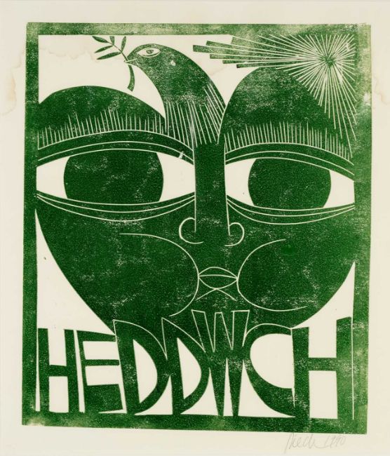 ‡ PAUL PETER PIECH (American-Welsh 1920-1996) woodcut print - entitled, 'Heddwch / Peace', signed and dated 1990, 41 x 35cmsProvenance: private collection South WalesComments: water stain to the top half of the print, framed, glass missing