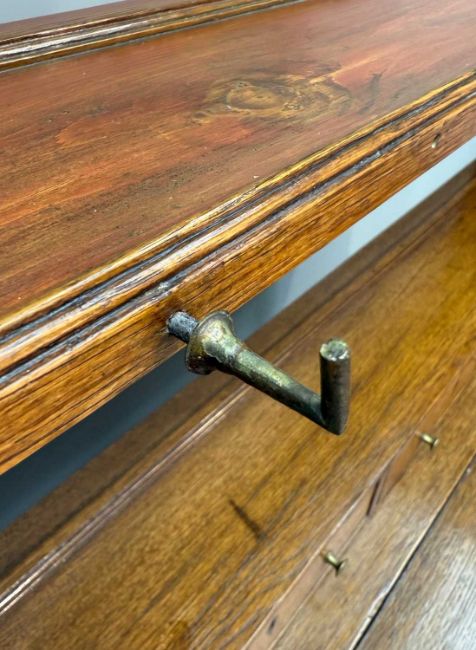 GEORGE III OAK WELSH DRESSER, c. 1820, open rack with five spice drawers, base with a further seven drawers, triple arches, pot-board below, 188 (h) x 153 (w) x 50cms (d)Provenance: private collection CardiffComments: general stains, very minor moulding loss, drawers tight, damage to turned handles, holes to rack side panels (for plate supports?), base side panel with splits, overall good, inspection advised