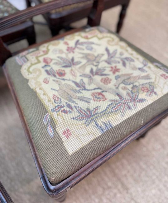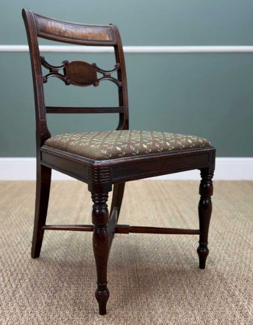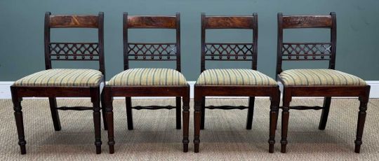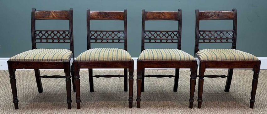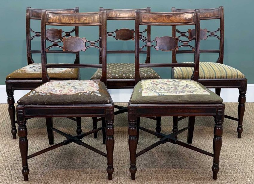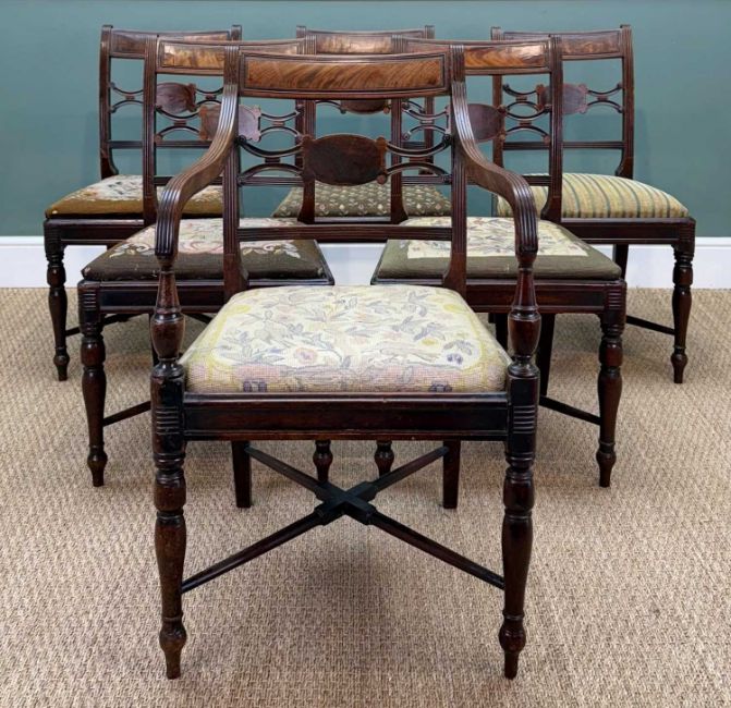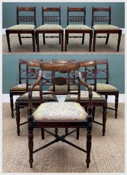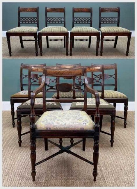 TEN REGENCY MAHOGANY DINING CHAIRS, including one armchair, from seaprate sets and mixed upholstery (6+4)Provenance: private collection Vale of GlamorganComments: good overall condition, one chair frame slightly loose, inspection advised