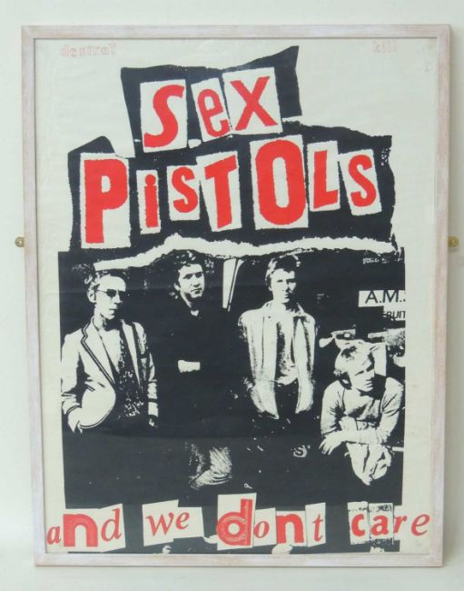 SEX PISTOLS ORIGINAL PROMOTIONAL POSTER for the 1977 single Pretty Vacant, with contemporary stencilling at the top 'Destroy and Kill' in felt tip, 93 x 71cmsProvenance: The collection of Philip ClarksonComments: framed and glazed; fold marks, small tears in upper right corner, some light spotting and slight discolouration, light creasing throughout
