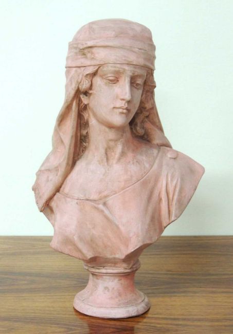 CAST PLASTER BUST OF A RENAISSANCE LADY, tinted pink to simulate terracotta, 57cms (h)Provenance: The collection of Philip Clarkson