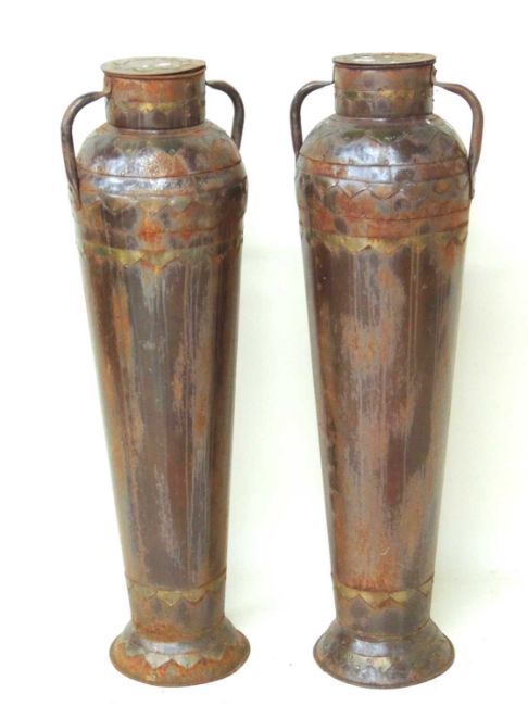 UNUSUAL PAIR OF COPPER & SHEET METAL AMPHORA, 105cms (h)Provenance: The collection of Philip Clarkson