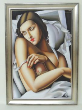 AFTER TAMARA DE LEMPICKA (1894-1980) reproduction acrylic - The Convalescent, 103 x 74cms (total size)Provenance: The collection of Philip ClarksonComments: modern silvered frame