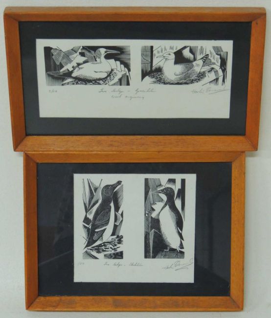 HORTON ORMEROD (1918-1983) limited edition (1/50) wood engraving - 'Two Ledges, Skokholm', signed, 14 x 15cms; and limited edition (2/50) wood engraving 'Two Ledges, Grassholm', signed, 10 x 23cms (2)Provenance: The collection of Philip Clarkson