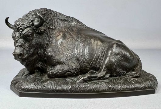 ‡ ERICH OEHME (German, 1898-1970) bronze resin - Recumbent bison, signed, on base, 22 (h) x 40cms (l)Provenance: private collection GwyneddNotes: Erich Oehme was a German sculptor, best known for his models of animals, notably manufactured at the Meissen Porcelain Factory.