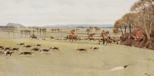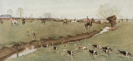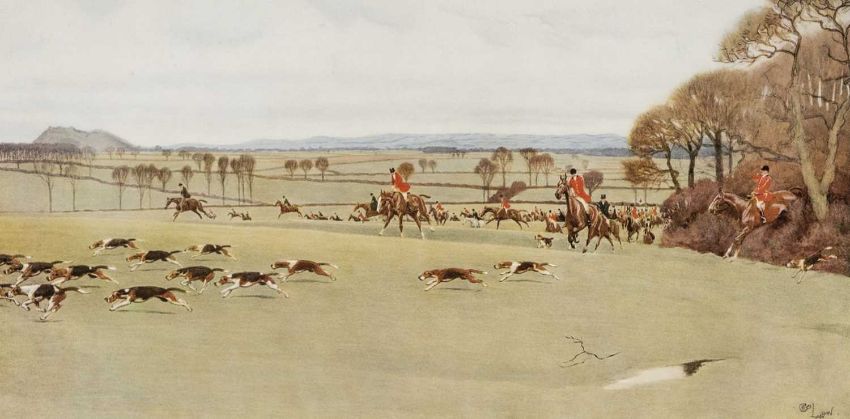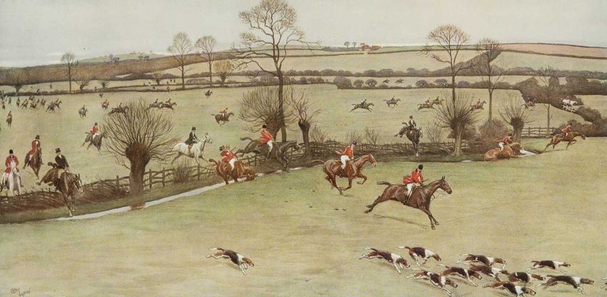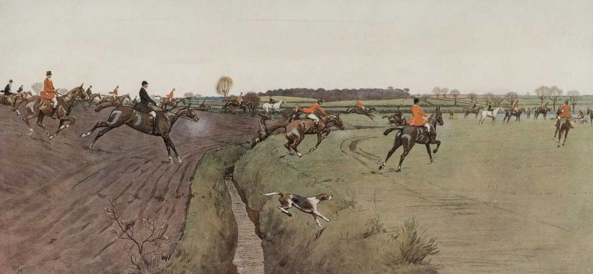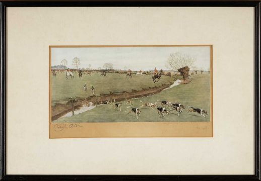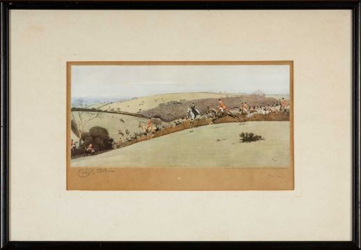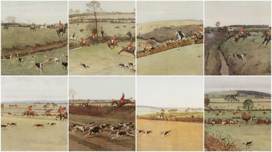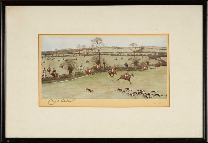 HUNTING CLUB HOUSE: CECIL ALDIN (1870-1935) set of eight colour prints - hunting scenes, published by Richard Wyman & Co., all signed and numbered in pencil, 17 x 31cms (8)Provenance: private collection Carmarthenshire