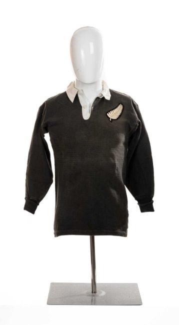 RUGBY UNION CLUB HOUSE: EARLE KIRTON NEW ZEALAND JERSEY from 1963 All Blacks tour game against Newport, applied embroidered felt patch of silver fern to right breast, one button collar, fabric no.6 applied to rear, 'Canterbury, Made in N.Z' maker's mark to collar, size MIt remains one of the greatest days in the 150 years history of Newport RFC – the day they beat the mighty All Blacks 3-0. At the heart of that great triumph on 30 October 1963 was the home side’s 21-year-old talisman, David Watkins. He found himself playing against Earle Kirton, of Otago. The 22-year-old had forced his way into the touring party and made the first of what would be 49 appearances for the All Blacks at a very damp Rodney Parade. It wasn’t a great day for him as the New Zealanders lost for the only time on their 36 match tour. Watkins made the break that began the move upfield that ultimately led to John Uzzell dropping the goal that won the game for the Black & Ambers. Watkins would go on to face the All Blacks with Wales in the international in Cardiff, while Kirton dropped down the pecking order for the outside half berth. He eventually played 13 times in the 36 games but didn’t feature in any of the Test matches. He had to wait until the 1967 tour to the UK & France to make his international debut. He arrived with a bang, scoring two tries at Twickenham in a 23-11 win over England. He would go on to appear in 13 Tests and was named as one of the New Zealand Rugby Almanack’s Five Players of the Year for 1967. He ended his international career with 12 wins and only one defeat, in his first appearance against South Africa in 1970.NEWPORT 3 – 0 NEW ZEALAND – 30 October 1963Newport: Ray Cheney; Stuart Watkins, John Uzzell, Brian Jones, Dennis Perrott; David Watkins, Bob Prosser; Nev Johnson, Graham Bevan, David Jones, Ian Ford, Brian Price (captain), Alan Thomas, Glyn Davidge, Keith PooleNew Zealand: Don Clarke; William Davis, Ian MacRae, Pat Walsh, Ralph Caulton; Earle Kirton, Kevin Briscoe; Wilson Whineray (captain), John Major, Ian Clarke, Ron Horsley, Colin Meads, Waka Nathan, Brian Lochore, Kel TremainReferee: Gwynne Walters (Gowerton)EARLE KIRTON Born in Taumarunui on 29 December 1940, and educated at St Joseph's Convent School in Upper Hutt and St Patrick's College, Silverstream, he first played for Otago while studying at the local university. He first toured with the All Blacks in 1963 and returned to the UK with the 1967 squad. He played twice in Australia in 1968 and made his final international appearance in the third Test on the 1970 tour to South Africa. He was in the Otago team that beat the touring British & Irish Lions side in 1966 – David Watkins sat out that game – and also played for and captained the Harlequins while on a two-year (1971-73) dentistry fellowship at the Royal College of Surgeons. He also turned out for Middlesex and the Barbarians. When he returned to New Zealand he became a selector-coach of the Wellington provincial side that won the NPC title in 1986. He then served as a national selector in 1988 and from 1992 to 1995. He is still alive at the age of 84.Provenance: the David 'Dai' Watkins Collection, by descent
