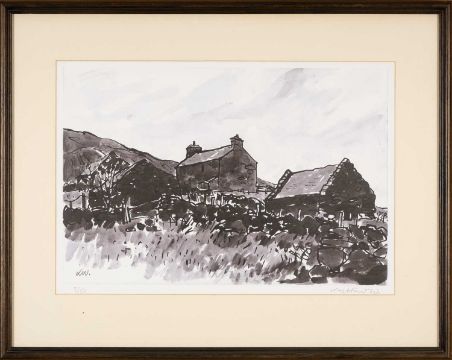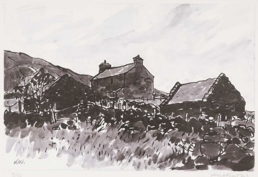 ‡ SIR KYFFIN WILLIAMS RA (1918-2006) limited edition (9/50) print - a hilltop farmstead, Hendre Waelod, fully signed in pencil, 37 x 54cmsProvenance: private collection Vale of GlamorganComments: framed, glazed