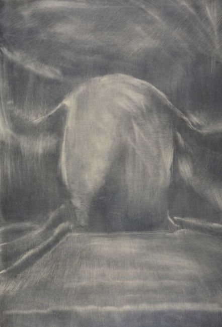 ‡ HARRY HOLLAND (b. 1941) monotype print - entitled verso '79. Mask, 1989' on Wolseley Fine Arts Gallery label, signed, 120 x 81cmsProvenance: private collection HerefordshireComments: framed and glazed