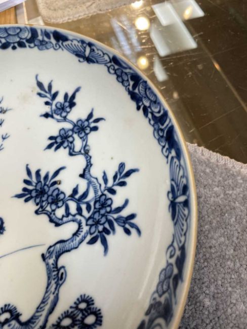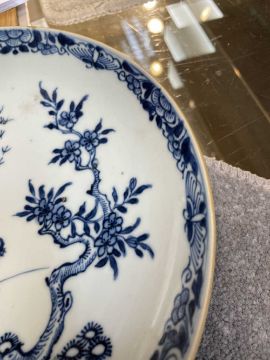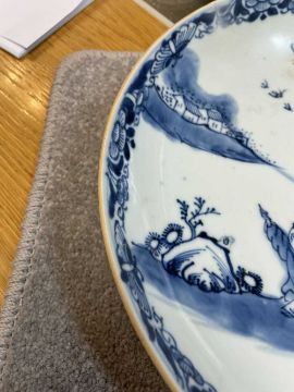 CHINESE BLUE & WHITE SAUCER DISH, late Qing Dynasty, painted with Xi Wang Mu beside deer and attendant below flowering tree in landscape, 24.4cms (diam.)Provenance: private collection ConwyComments: good overall