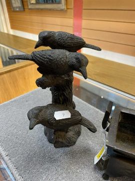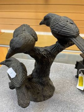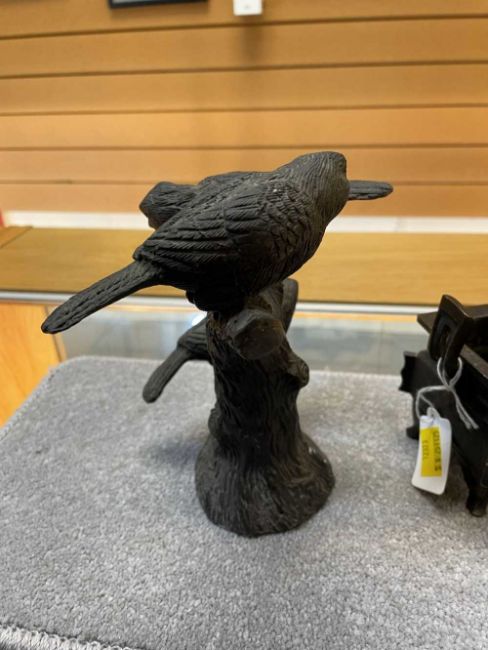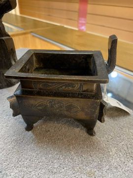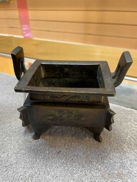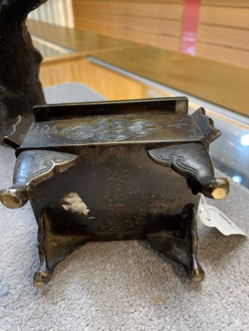 CHINESE BRONZE CENSER, DING, base with 3-character mark, 12.5cms (w); and a European bronze group of birds on a branch, base bears mark 'Barrie' 18cms (h) (2)Provenance: deceased estateComments: minor rubbing only