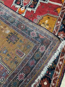 ANATOLIAN TURKISH RUG, Konya, stylised geometric medallion on madder field, orand spandrels, floral border, 113 x 225cmsProvenance: private collection PowysComments: minor issues, inspection advised.