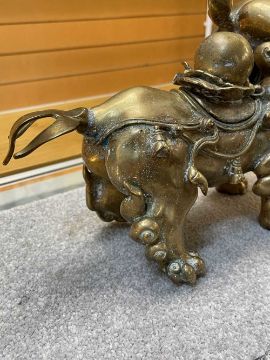 CHINESE GILT COPPER BUDDHISTIC LION CENSER, 20thC., with back cover supporting ball, 24cmsProvenance: private collection Somerset