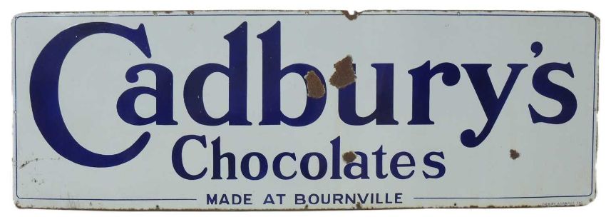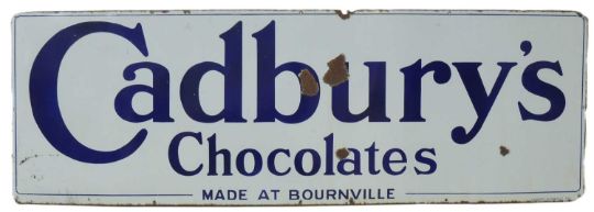 CADBURY'S CHOCOLATES, MADE AT BOURNVILLE ENAMEL SIGN, 181 x 61cmsProvenance: The collection of Philip ClarksonComments: some chips to the centre with enamel losses, minor rusting to centre of the top edge