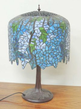 DECORATIVE LEADED GLASS TABLE LAMP in the manner of Tiffany, 74 (h) x 45cms (diam.)Provenance: The collection of Philip Clarkson