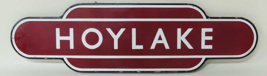 BRITISH RAILWAYS (M) TOTEM SIGN: HOYLAKE (FF), 92 x 26cmsProvenance: The collection of Philip ClarksonComments: small light enamel chips to the edges, surface degradation to the black border