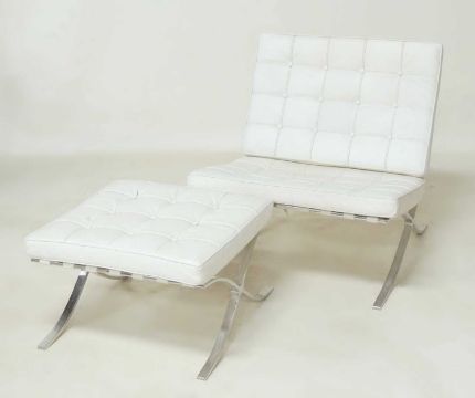 MODERN BARCELONA CHAIR & STOOL, upholstered throughout in cream leather, after an original by Mies van der Rohe, chair 77cms (w)Provenance: The collection of Philip Clarkson