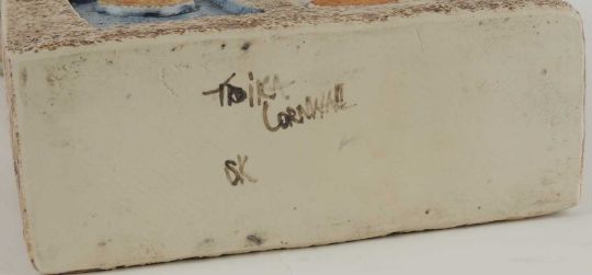 TROIKA POTTERY DOUBLE BASE VASE, geometric pattern, base monogrammed 'SK', 35.5cms (h)Provenance: The collection of Philip Clarkson