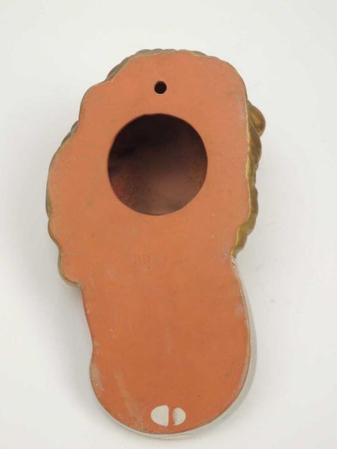 GOLDSCHEIDER WALL MASK, cream and green glaze, original maker's label, 28cms (h)Provenance: The collection of Philip Clarkson