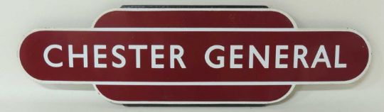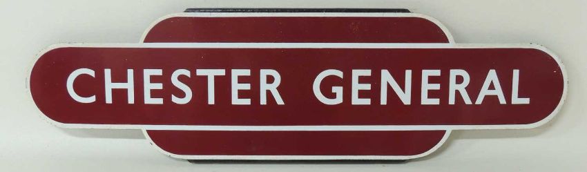 BRITISH RAILWAYS (M) TOTEM SIGN: CHESTER GENERAL (HF), 92 x 26cmsProvenance: The collection of Philip ClarksonComments: some white overpainting to the border, and repainting of the flange