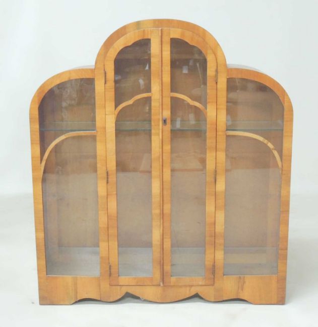 ART DECO WALNUT DISPLAY CABINET, c. 1930-40, two doors opening to two plate glass shelves, 128 (h) x 113 (w) x 28.5cms (d)Provenance: The collection of Philip Clarkson