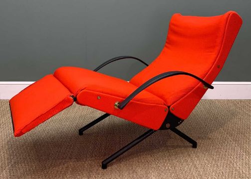 OSVALDO BORSANI FOR TECNO: MID-CENTURY P40 LOUNGE CHAIR, reclining, multi-adjustable chair, curved rubber sprung armrests, spare side panels (sun-bleached)Provenance: private collection Cardiff, family owned and seldom used from newComments: fabric appears to be original, headrest foam misshapen, some small brass work missing, fabric spotted, rubber slightly perished, foam filling disintegrating/powdery, original unrestored condition, inspection advised
