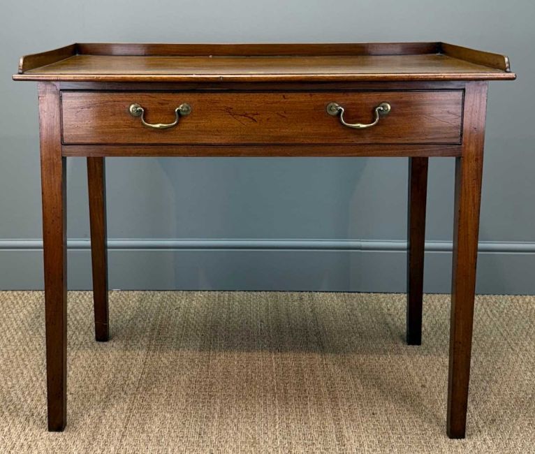 GEORGE III MAHOGANY SIDE TABLE, three quarter gallery, single frieze drawer, sectioned interior, brass handles, square tapering legs, 83 (h) x 100 (w) x 60cms (d)Provenance: private collection CardiffComments: ordinary used condition with light stains & scratches, some fade, inspection advised