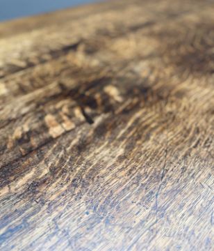 LARGE 17TH C. STYLE OAK CARVED TABLE, near half-length concealed frieze drawer, 'bobbin' style turned legs topped with comedic carved mascarons, supported by carved stretchers, 75 (h) x 178 (w) x 116cms (d)Provenance: private collection CardiffComments: normal used condition with old stains, scratches, ring marks, indents, inspection advised
