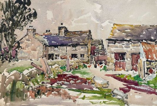 ‡ WILL EVANS (1888-1957) watercolour on card - farmstead with poultry feeding, unsigned, 39 x 57cms, together with, watercolour on card - farmstead with cattle in the foreground, unsigned, 38 x 57cms (2)Provenance: private collection DerbyshireComments: both unframed, inspection advised