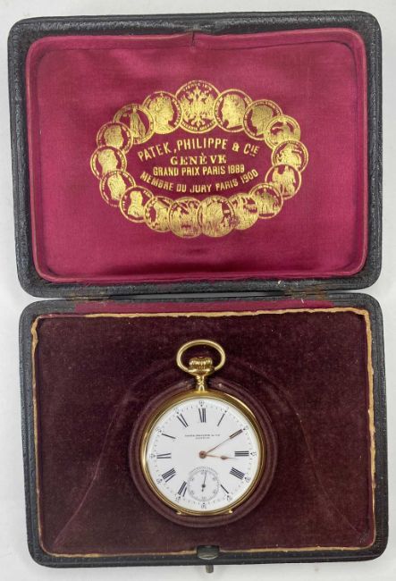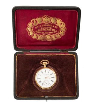 PATEK PHILIPPE 18CT GOLD CHRONOMETRO GONDOLO KEYLESS POCKET WATCH, white enamel dial with subsidiary seconds, 40mms (diam.), engine turned back cover, inner cover inscribed and numbered 138910, the movement signed, numbered and further inscribed 'Pat. Jan. 13 1891', 44mms (diam.), gross weight 72.7g, in original fitted boxProvenance: private collection MerseysideComments: working order, currently ticking when wound, hands adjust correctly, the cast has some small shallow dents, dine surface scratches consistent with age and normal use, the dial is clear and free of hair cracks, box in good condition