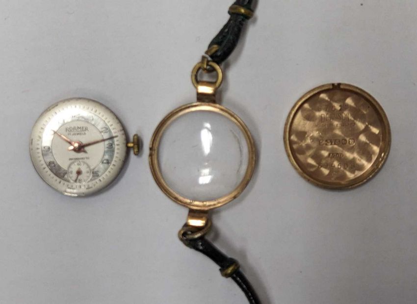 THREE WRISTWATCHES, comprising 9ct gold ladies' Roamer watch with 17J antimagnetic manual wind movement, 22mms (diam.), Gents Sekonda gold-plated calendar watch, 34mms (diam.), original vintage Sekonda Russian clamshell box, and a ladies' Lorus quartz watch (3)Provenance: private collection CardiffComments: Roamer not working, Sekonda working, Lorus not working.