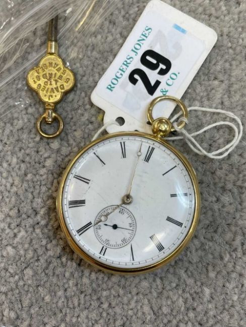 WILLIAM IV 18CT GOLD POCKET WATCH, 1829, key-wind lever cuvette signed John Kidder, 6-Strand, London no.608, monogrammed, crested and engine turned back, 42mm diam., 63.6gProvenance: consigned from SwanseaComments: back rubbed, dial cracked.
