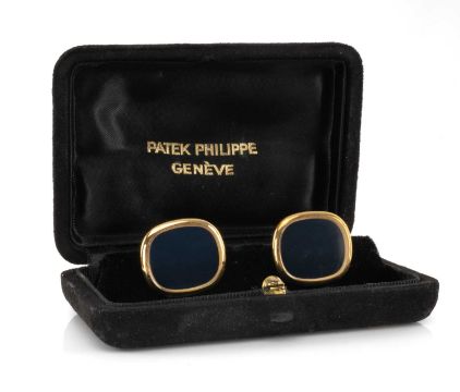 PATEK PHILIPPE 18CT GOLD 'ELLIPSE' CUFFLINKS, set with blue stone centres, rub-over setting, stamped '750', 26.6g gross in vintage Patek Philippe box (2)Provenance: private collection Bridgend County BoroughComments: light wear commensurate with age / use, viewing recommended