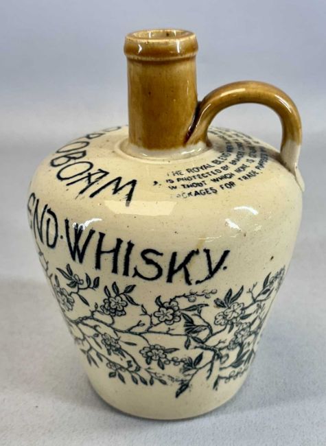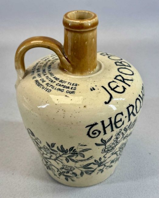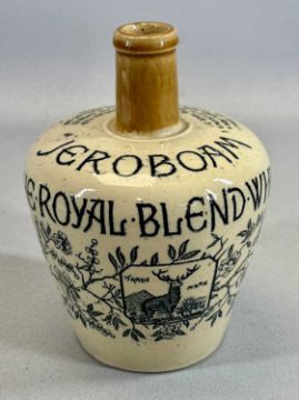 M. KENNEDY STONEWARE ADVERTISING WHISKY JUG, 'Jeroboam - The Royal Blend Whisky, E. Gayton, 91 High Street, Southampton', impressed mark to base, 19cms (h)Provenance: private collection Ynys Môn