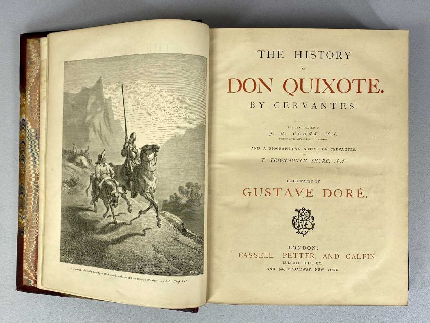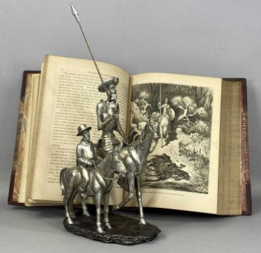CERVANTES 'The History of Don Quixote', illustrated by Gustave Doré, published by Cassell, Petter & Galpin, c. 1890, with a contemporary metal sculpture of Don Quixote and Sancho, 43cms (h)Provenance: private collection Denbighshire