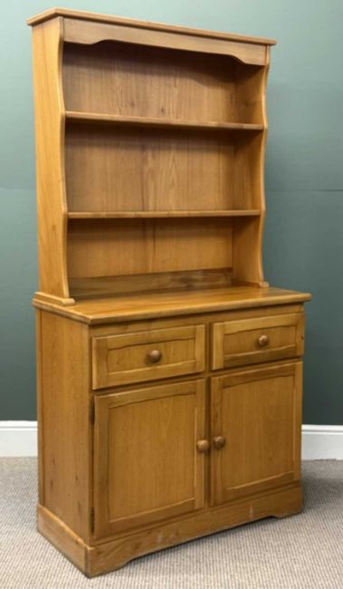 MODERN LIGHT BEECH DRESSER, with boarded plate rack back over two drawers and double cupboards, 176 (h) x 92 (w) x 43cms (d)Provenance: private collection Gwynedd