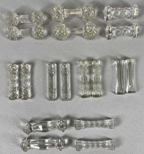 NINE PAIRS OF GLASS KNIFE RESTS, some with cut decorationProvenance: private collection Ynys Môn