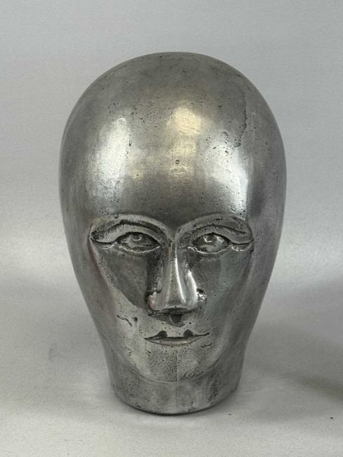 CAST ALUMINIUM GERMAN MILLINERS HEAD, 26cms (h)Provenance: private collection Conwy