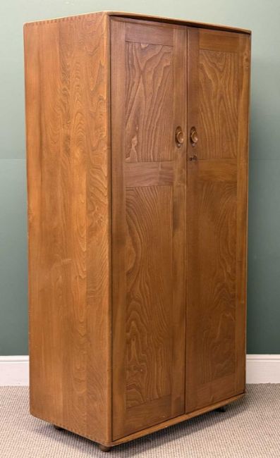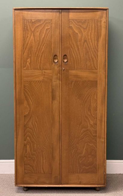 ERCOL LIGHT ELM TWO-DOOR WARDROBE, 183 (h) x 92 (w) x 54cms (d)Provenance: private collection Gwynedd