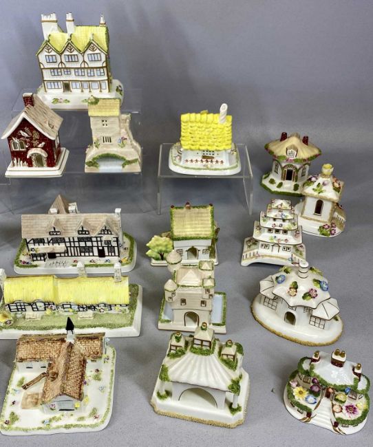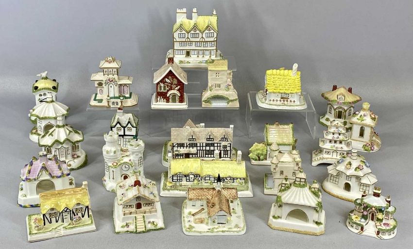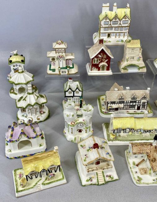 COLLECTION OF COALPORT PASTILLE BURNERS, modelled as buildings (24)Provenance: private collection Conwy