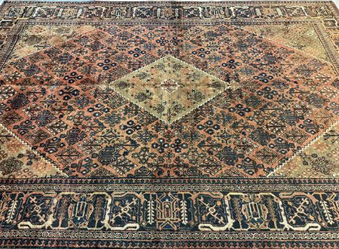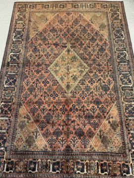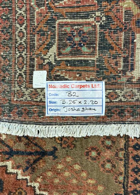 JOSHAGHAN WOOL CARPET, red ground with central diamond motif, 325cms x 220cmsProvenance: private collection Cambridgeshire