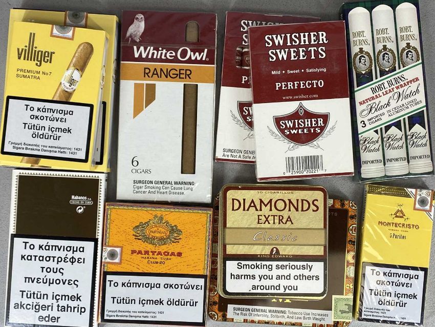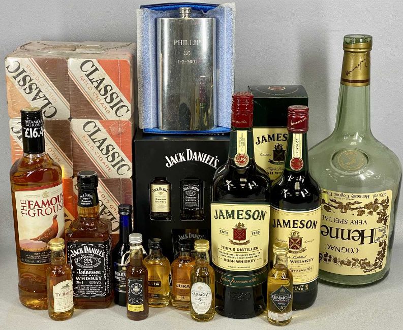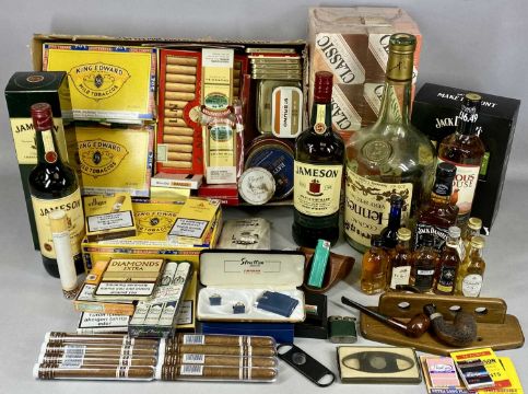 ALCOHOLIC DRINKS / CIGARS, Jameson Irish Whisky 1L 40%; Famous Grouse 70cl 40%; Jameson Irish Whisky 70cl 40%; eight Guantanamera cigars in tubes; three Blackwatch cigars in cedar lined aluminium tubes; five Villiger Premium No. 1 Sumatra cigars in unopened box; five Villiger Premium No. 7 Sumatra cigars in unopened box, etc.Provenance: private collection Denbighshire