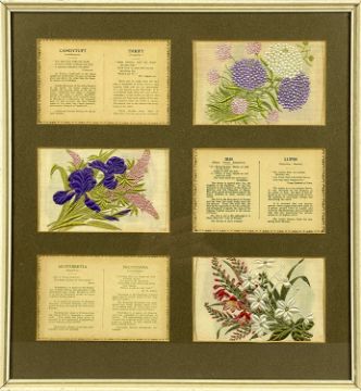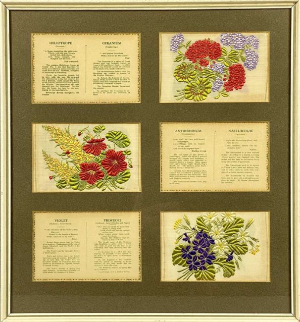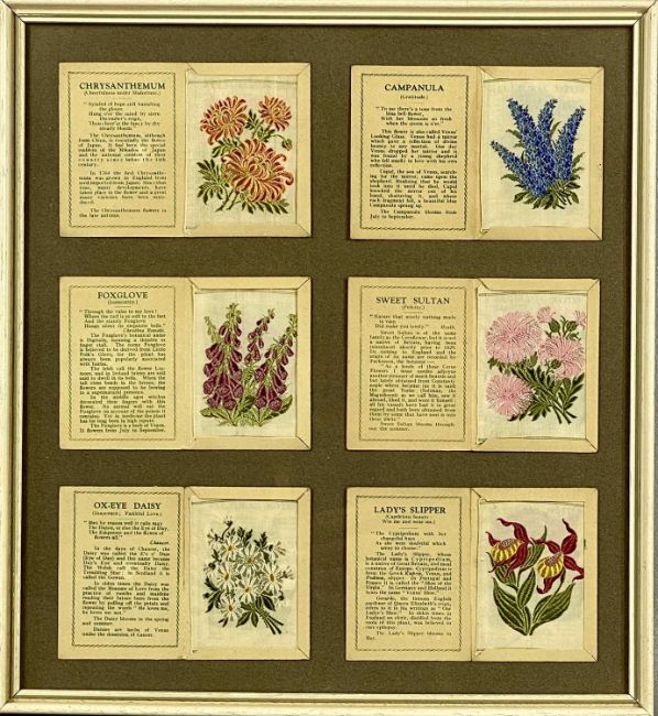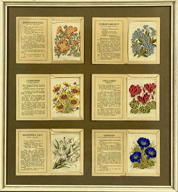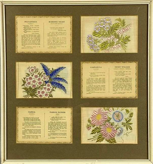 COLLECTION OF 27 KENSITAS CIGARETTES FLORAL SILK SILKS, medium and large sizes, contained in six glazed framesProvenance: private collection Conwy