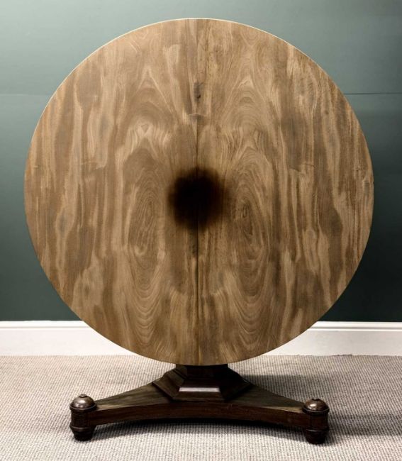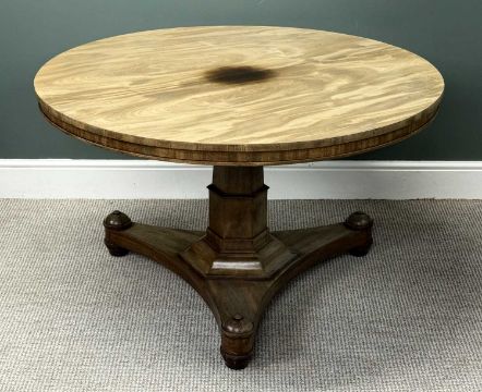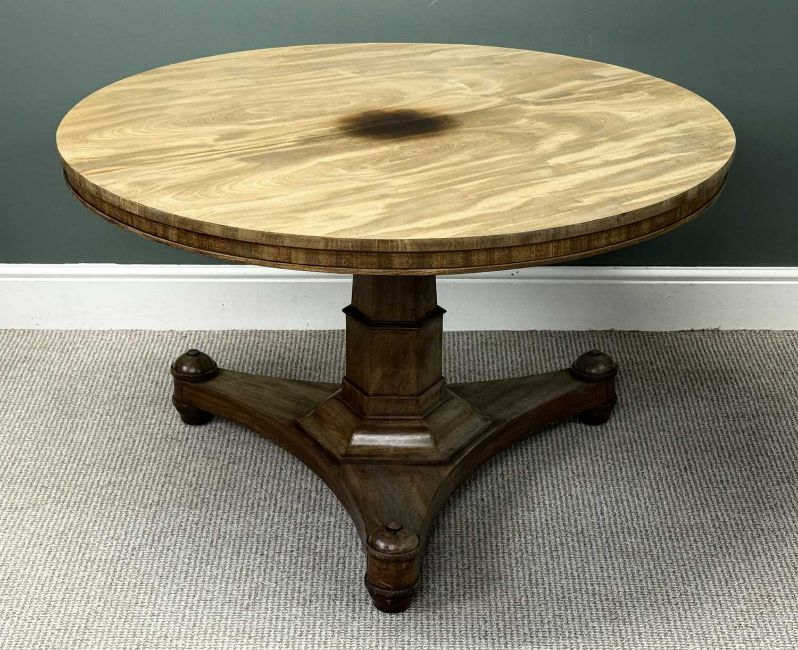 VICTORIAN MAHOGANY BREAKFAST TABLE, circular tilt top, tapered octagonal column to the trefoil base, on bun feet, 78 (h) x 122cms (w)Provenance: private collection Ynys Môn